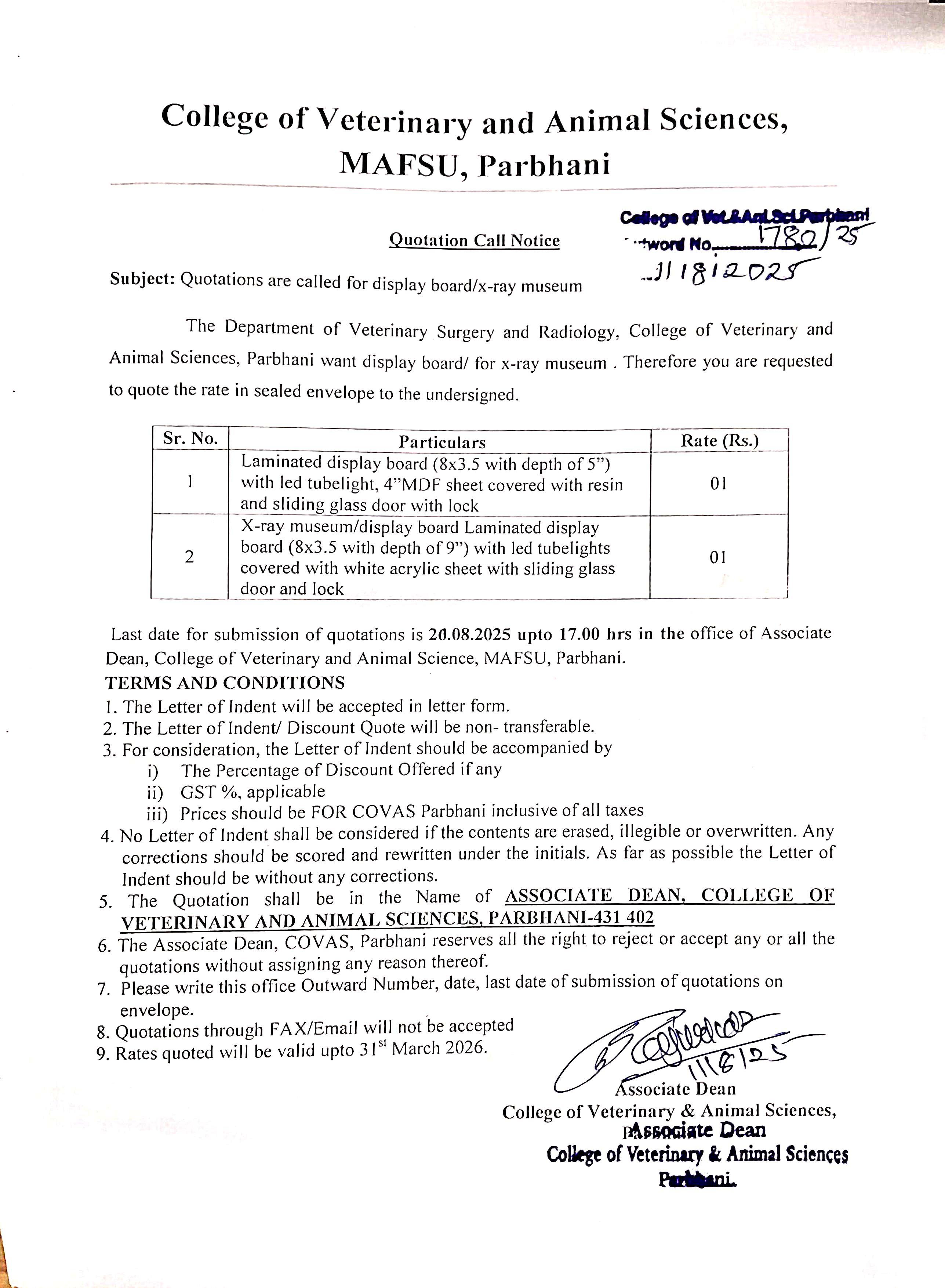 • Quotation calling notice for X-ray display board/museum and display board for covas Parbhani Click Here